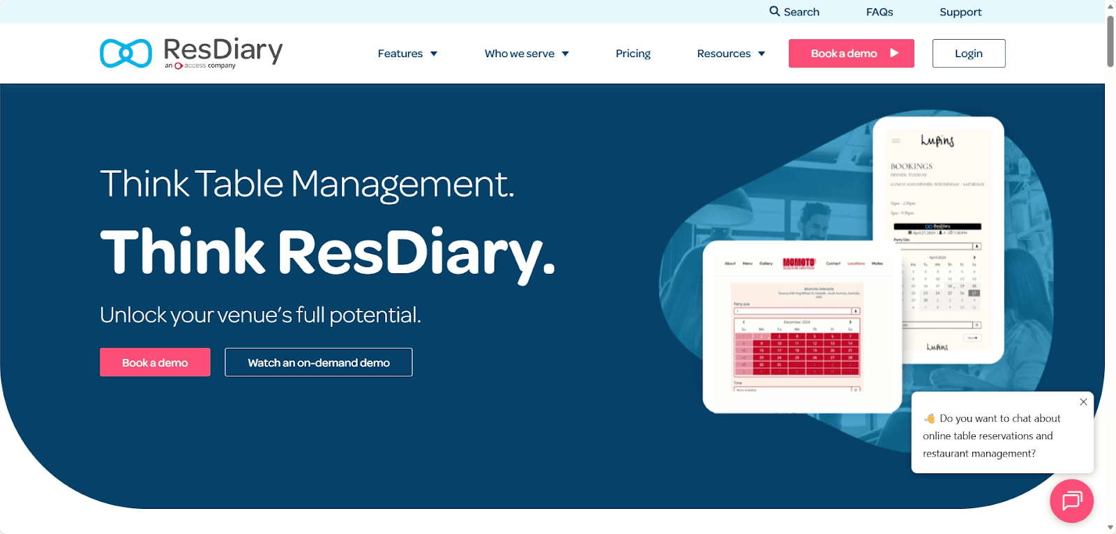 ResDiary functions as a central booking engine with advanced table controls and flexible availability rules. It supports integration with other systems, allowing restaurants to build a customized tech stack.