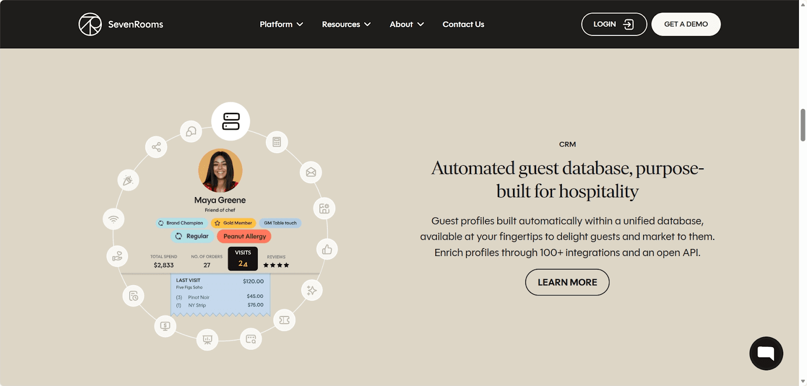 SevenRooms centralises reservations and guest data, allowing restaurants to track detailed behavioural patterns. Profiles include spend history, visit frequency, dietary preferences, and service notes.