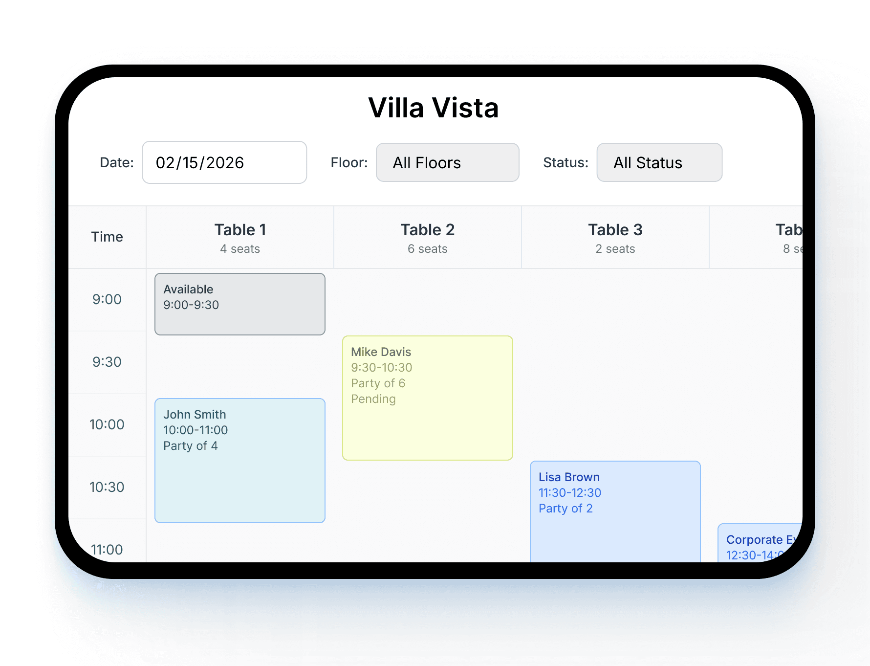 Table Optimization: Dynamic floor plan management and automated SMS reminders that drastically reduce no-shows.